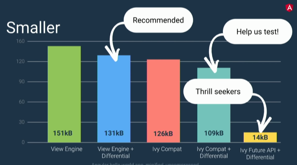 Damn! That’s Awesome. Ivy future API and Differential Loading reduced the hello world application to just 14 kB. That’s great work Angular team. Some bonuses of Ivy are,