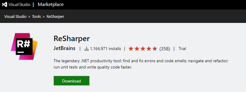 Marketplace link => https://marketplace.visualstudio.com/items?itemName=JetBrains.ReSharper